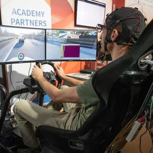 5月23日,在以色列特拉维夫,一名男子在第11届以色列智能交通展上体验一款远程驾驶系统。