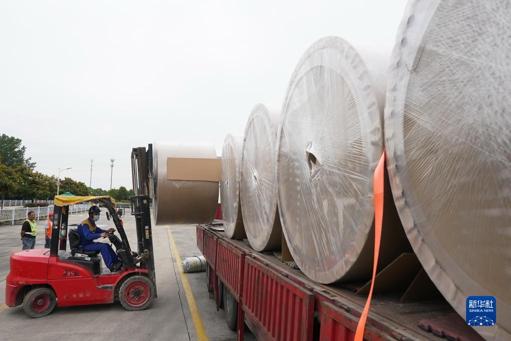 5月24日,在下蜀高新技术产业园内的一家石膏板生产企业,工人在运送原材料。