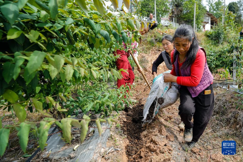 5月24日,在南江县高桥镇桅杆村,当地百姓将南江黄羊粪制成的有机肥施到金银花田里。