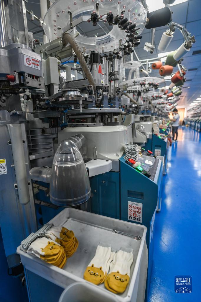 这是位于浙江省诸暨市大唐街道的友润袜业有限公司的数字化生产车间(5月25日摄)。