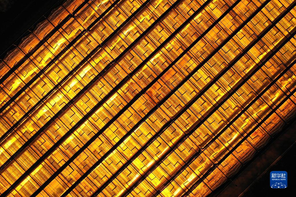 这是5月23日拍摄的贵阳市开阳县南江蔬菜良种繁育中心育苗大棚夜间补光场景(无人机照片)。补光更有利于种苗生长,缩短育苗周期。