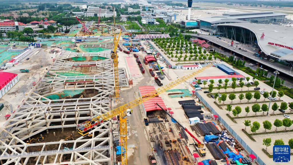 5月25日拍摄的济南遥墙机场综合交通枢纽工程施工现场。