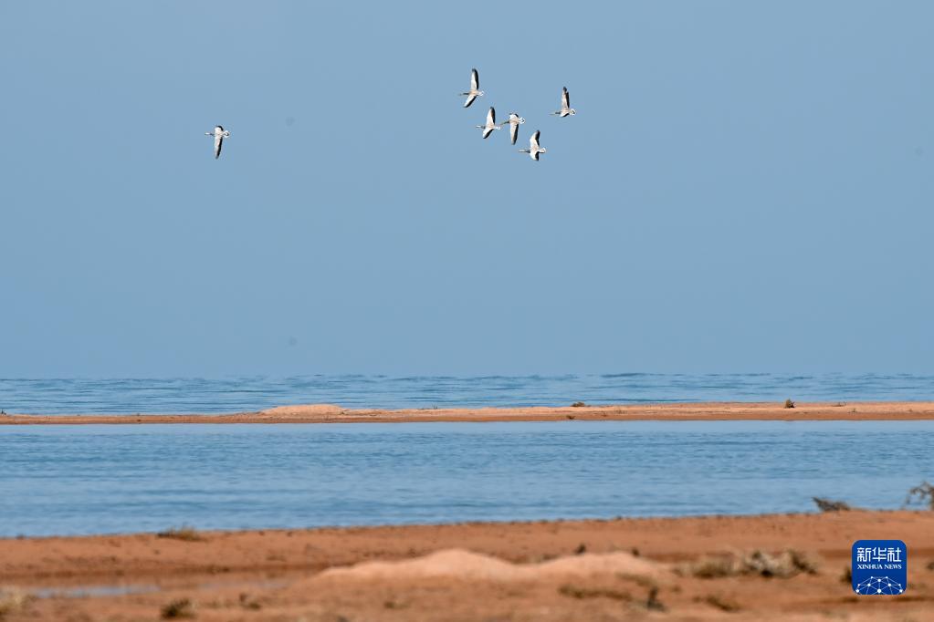 一群斑头雁在阿尔金山国家级自然保护区飞翔(5月23日摄)。