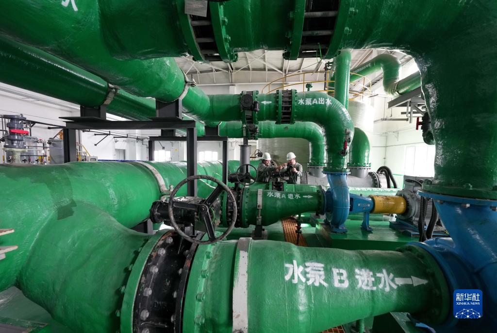 5月25日,工人在唐山市海港经济开发区海水淡化项目投产的淡水生产车间工作。