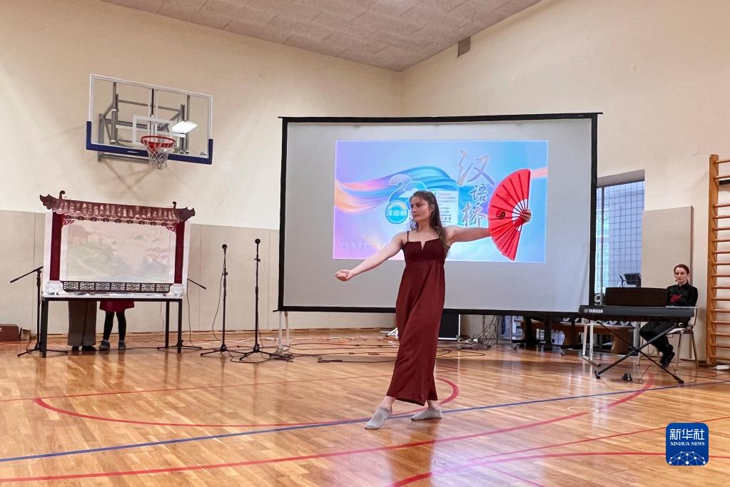 5月24日,选手在斯洛文尼亚采列市举行的“汉语桥”世界大学生中文比赛斯洛文尼亚选拔赛中展示才艺。