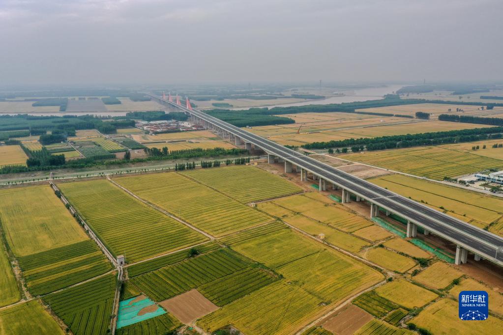 这是5月26日拍摄的孝里街道黄河滩区迁建复垦土地种植的小麦(无人机照片)。