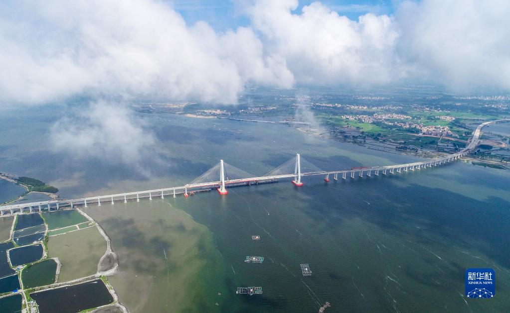 鹭洲大桥犹如长龙卧波,横跨南三岛海域(5月25日摄,无人机照片)。