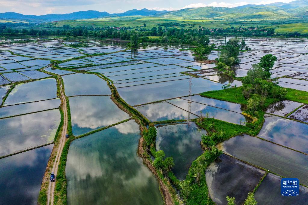 这是5月20日在北马其顿东部科查尼地区拍摄的稻田。