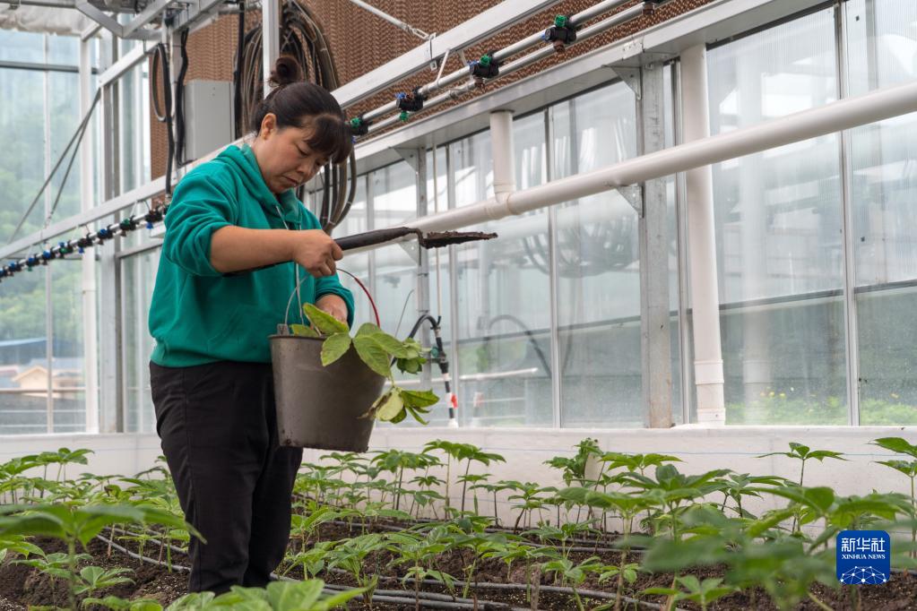 5月26日,在沐川县的魔芋科技示范园内,农户在进行魔芋苗种植管理。