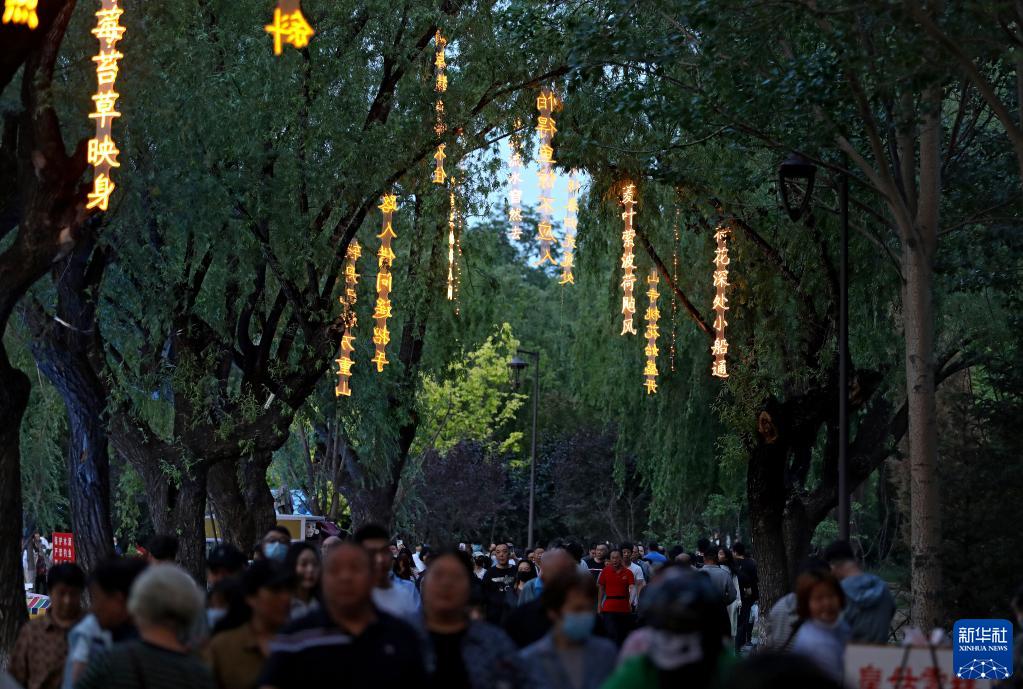 近日,沈阳市万泉公园打造的一条诗词漫道成为游客和市民的网红打卡地。每当夜幕降临,几十首古诗词彩灯在这条300余米道路的树梢枝头熠熠闪烁,以诗入景,一步一诗。