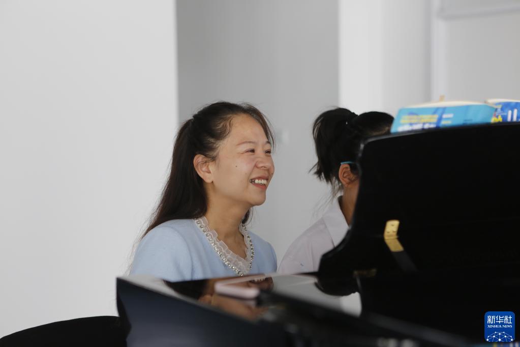 5月24日,忽晓在许昌市群众艺术馆指导盲童合唱团的团员弹钢琴。