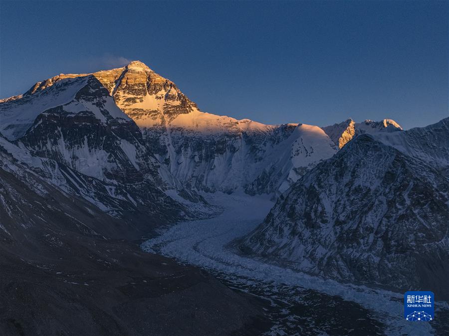 这是5月11日日落时分拍摄的珠穆朗玛峰(无人机照片)。