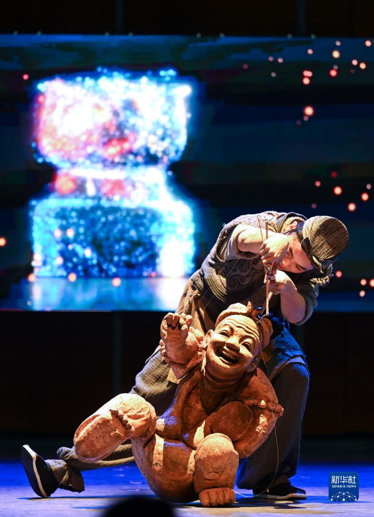 当日,中国国家博物馆联合中国传媒大学共同出品的原创文物活化舞台剧《盛世欢歌》在北京上演。该剧以汉代的击鼓说唱俑为切入点,生动再现了汉代俳优人的生命起伏。
