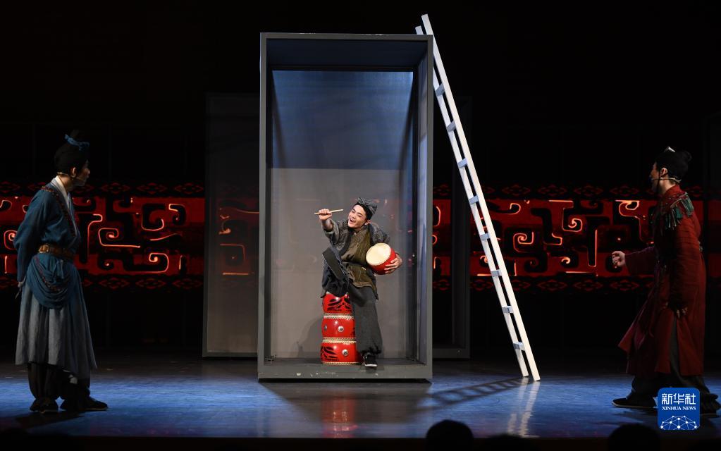 当日,中国国家博物馆联合中国传媒大学共同出品的原创文物活化舞台剧《盛世欢歌》在北京上演。该剧以汉代的击鼓说唱俑为切入点,生动再现了汉代俳优人的生命起伏。