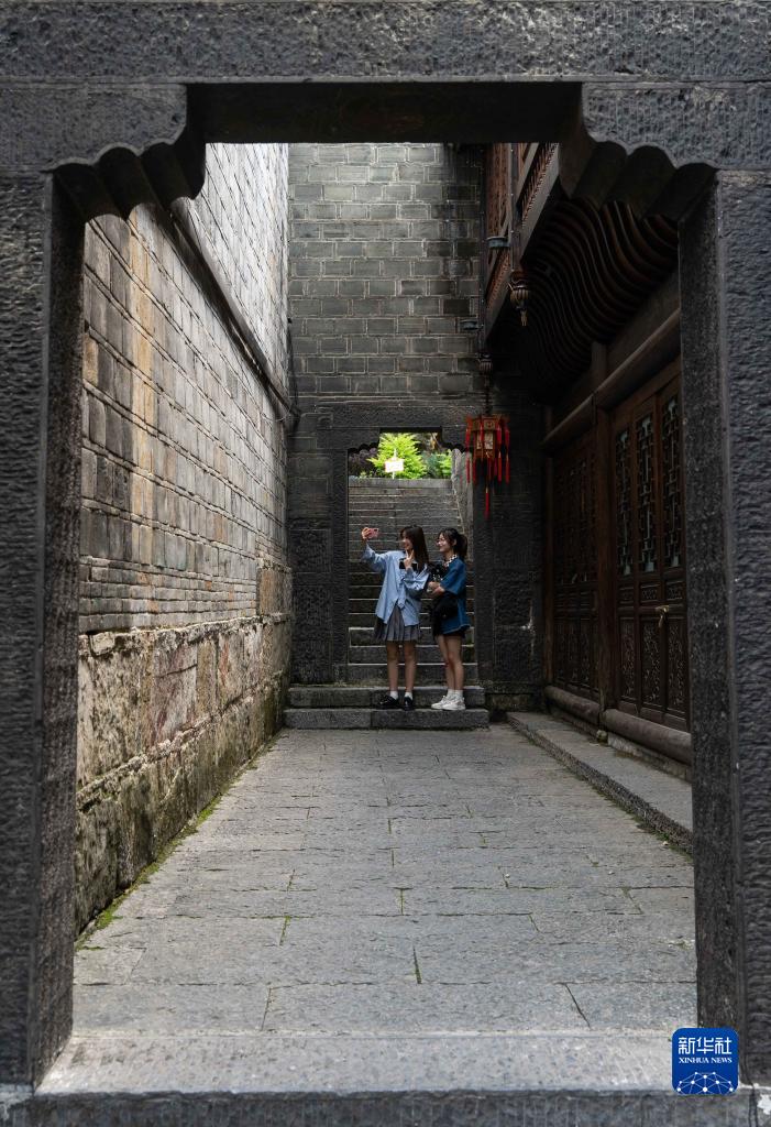 5月27日,游人在贵州省铜仁市中南门历史文化旅游区拍照。