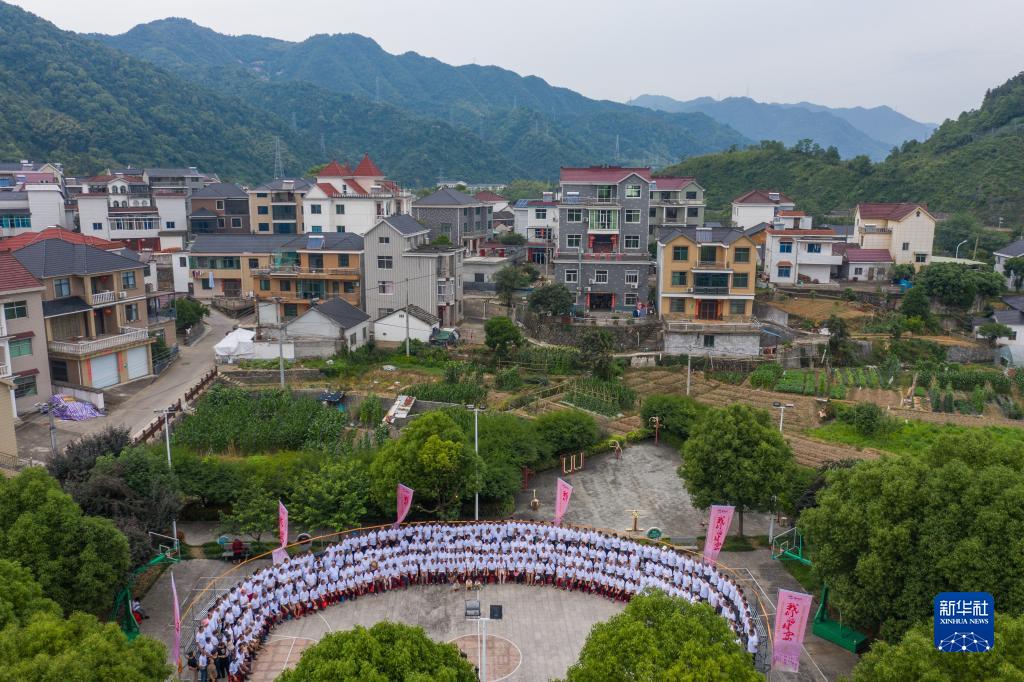 5月27日,梅坪村的村民拍摄首张“全村福”(无人机照片)。