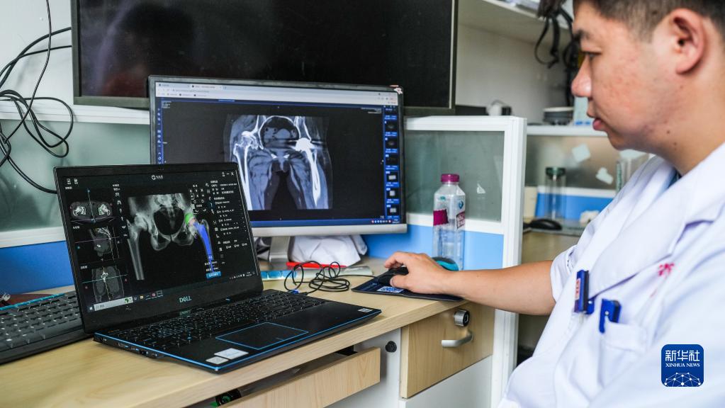 贵州省人民医院骨科医生通过AI软件进行髋关节置换手术的术前规划(5月25日摄)。