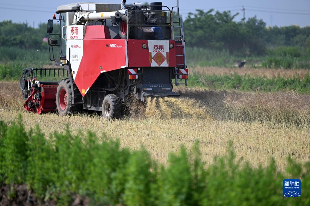 当日,天津市北辰区大张庄镇田庄村的1100亩油菜田,开始集中收割菜籽。联合收割机将在三天内完成采收,为下一轮种植高粱留出时间。