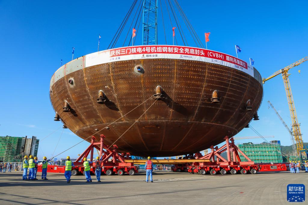 浙江三门核电二期工程4号机组核岛钢制安全壳底封头吊装就位