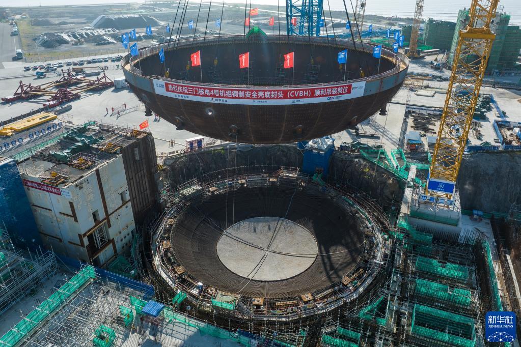 5月29日,在浙江省台州市三门县,三门核电二期工程4号机组核岛钢制安全壳底封头顺利吊装就位。这是4号机组核岛反应堆厂房吊装的首个大型模块,标志着该厂房主体结构施工开始。三门核电二期工程4号机组于3月22日开工,整个二期工程建成投产后,一、二期装机总容量将达到500万千瓦,年发电量预计可达到400亿千瓦时。