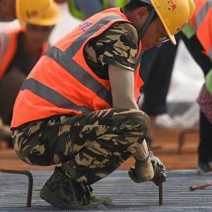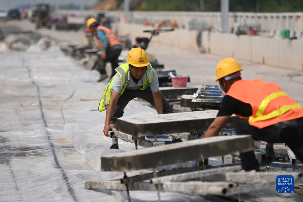 5月30日,中铁十一局的建设者在杭衢铁路无砟轨道施工现场作业。