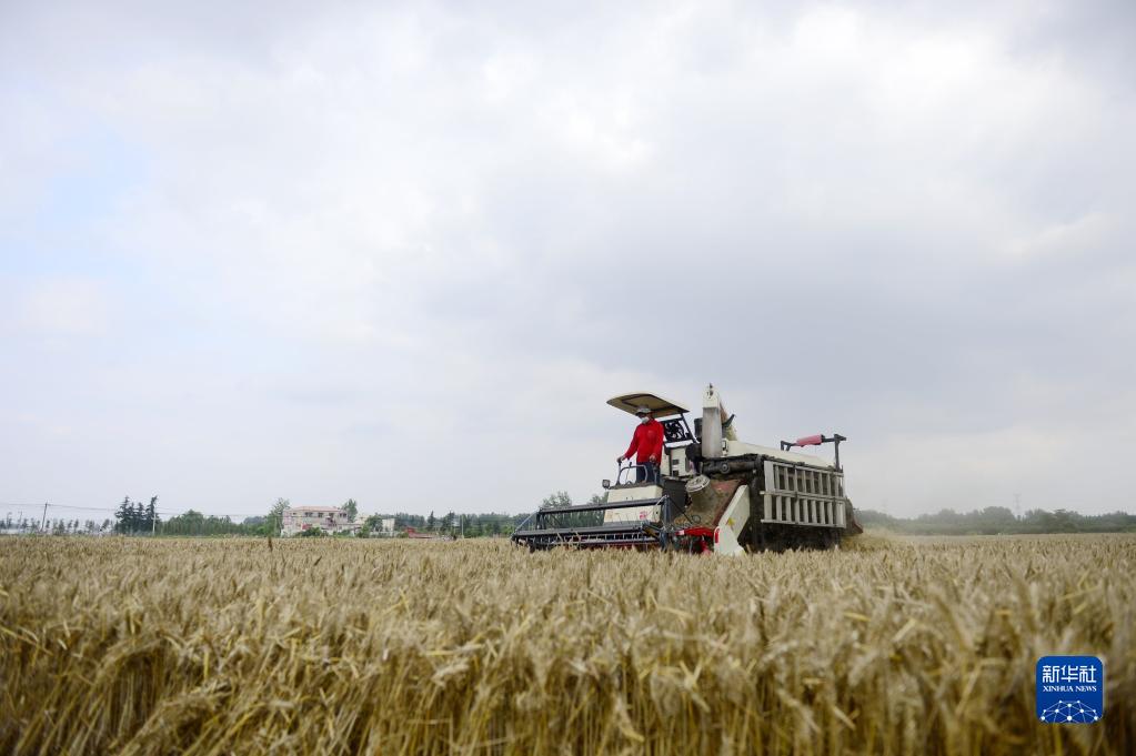 当日,河南省驻马店市汝南县雨歇,当地积极组织抢收已经成熟的小麦,确保夏粮归仓。