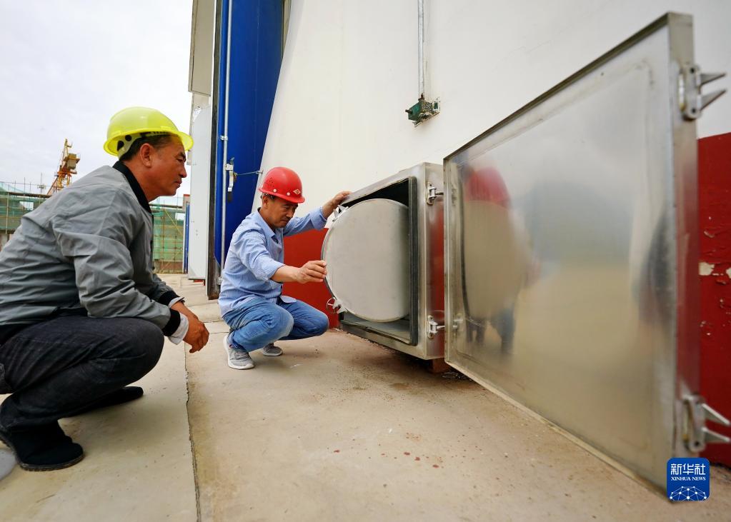5月30日,河北柏粮粮食储备有限公司工作人员检查粮库通风口。