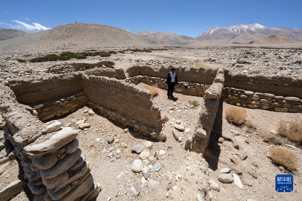 5月28日,扎西岗乡的副乡长索南次仁向记者介绍典角村的“一代房”。新华社记者 费茂华 摄
