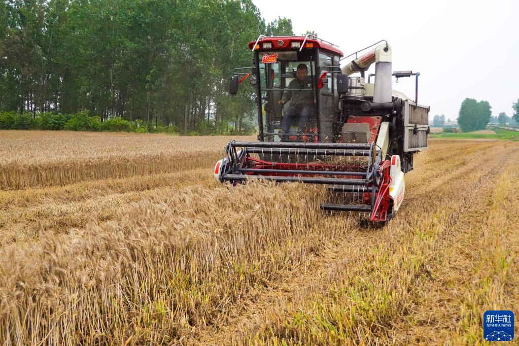 5月30日,河南省正阳县铜钟镇小李村村民抢收小麦。