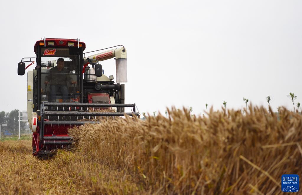 5月30日,在河南省驻马店市正阳县铜钟镇,收割机在抢收小麦。