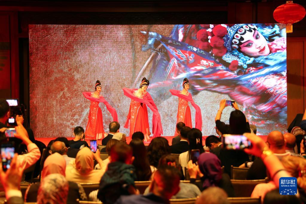 5月25日,嘉宾在埃及开罗举行的“茶和天下·雅集”活动现场观看中国传统舞蹈表演。
