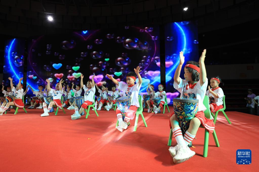 5月30日,小朋友们在贵州省铜仁市江口县体育馆参加欢乐迎“六一”文艺汇演活动。