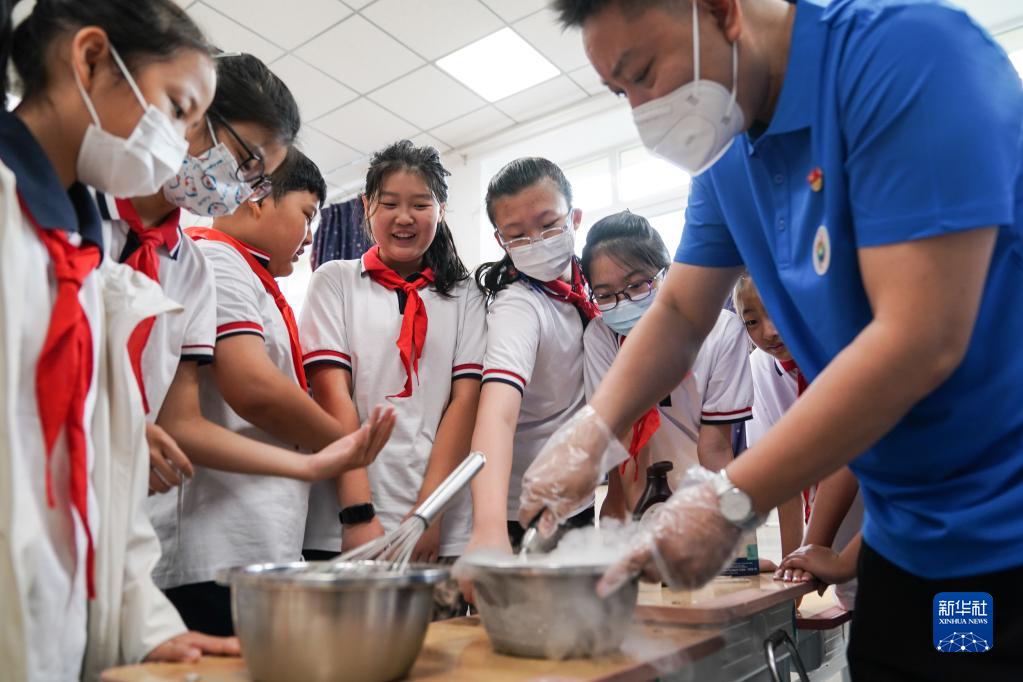 5月31日,在北京市东城区分司厅小学举行的2023年东城区青少年科技馆“玩转科学 童心筑梦”科技嘉年华活动上,老师利用液氮超低温的特性,为同学们做冰淇淋。