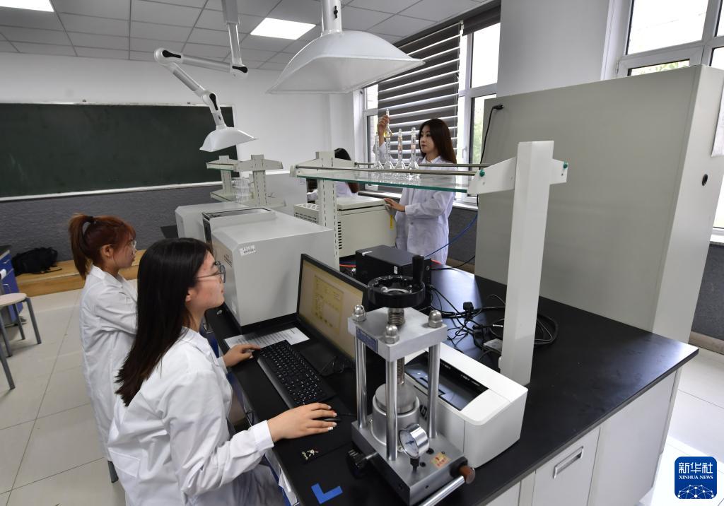 5月31日,在沈阳工学院生命工程学院光谱分析室,生命工程学院同学进行元素组成分析实验。