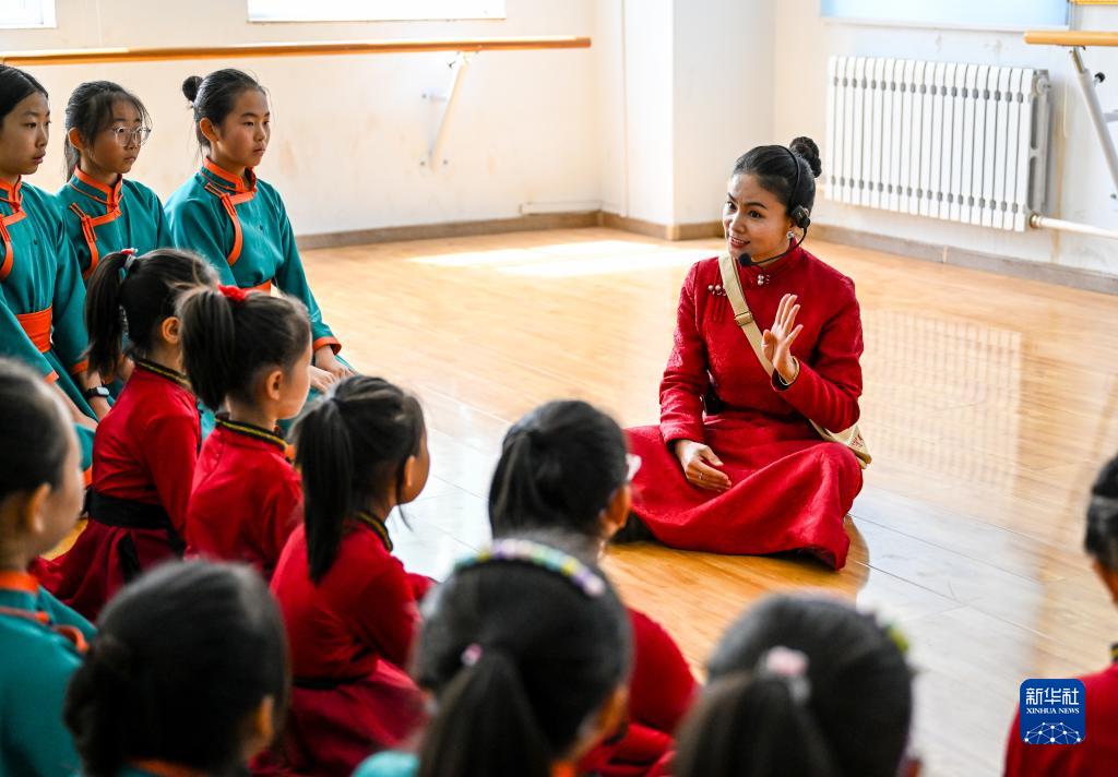 “六一”国际儿童节即将到来,内蒙古锡林郭勒盟苏尼特右旗乌兰牧骑队员走进苏尼特右旗第四小学,与由学生组成的“小小乌兰牧骑”一同交流,迎接儿童节的到来。