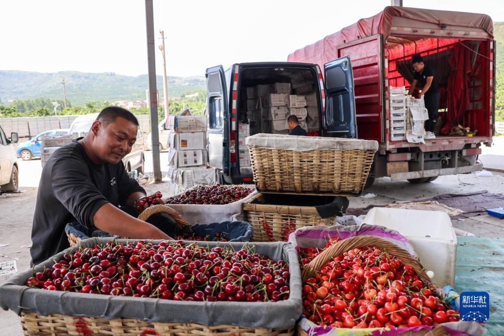 当下,山东省沂源县燕崖镇种植的樱桃丰收上市,绵延3公里的樱桃交易市场吸引了全国各地众多客商前来集中采购,一片繁忙景象。