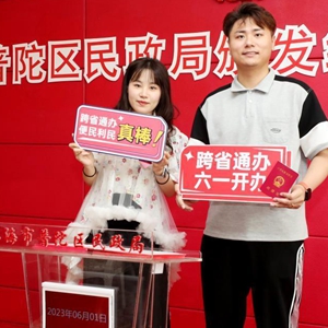 “跨省通办”服务开通首日,全市16个区级婚姻登记机关将迎来100余对新人“跨省”办理结婚登记。