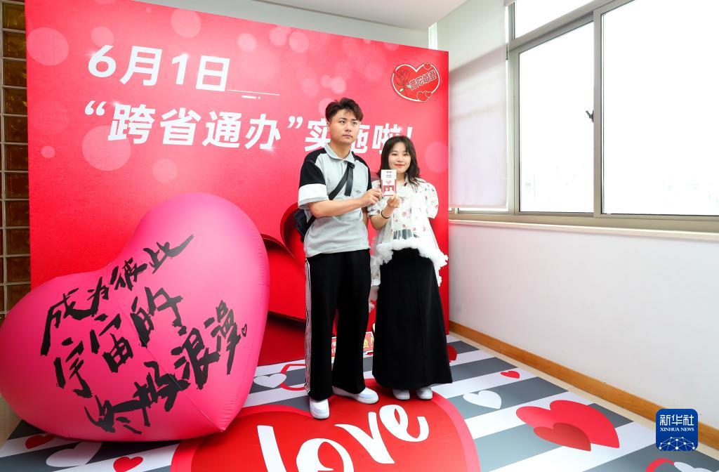 “跨省通办”服务开通首日,全市16个区级婚姻登记机关将迎来100余对新人“跨省”办理结婚登记。