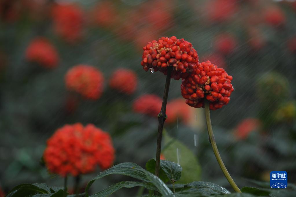 这是2022年11月5日在文山州西畴县莲花塘乡一个三七种植基地拍摄的三七果实。