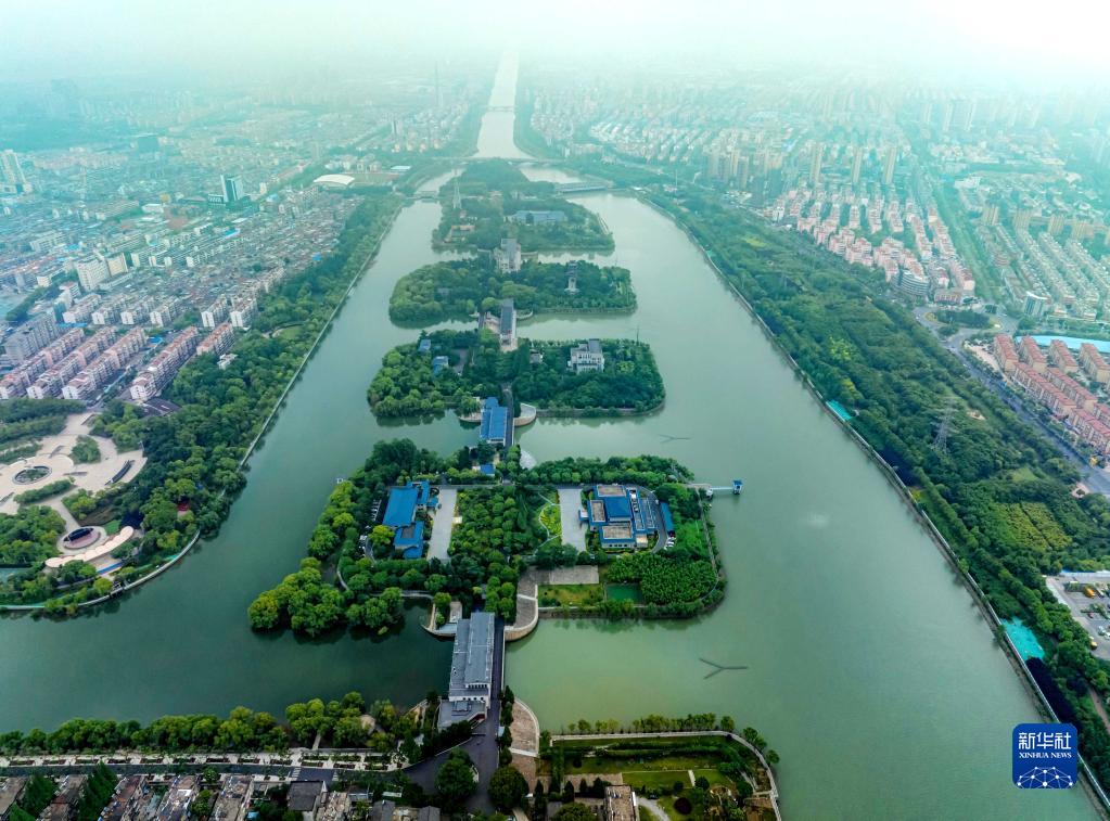 这是6月1日拍摄的位于江苏省扬州市江都区的南水北调东线源头江都水利枢纽(无人机照片)。