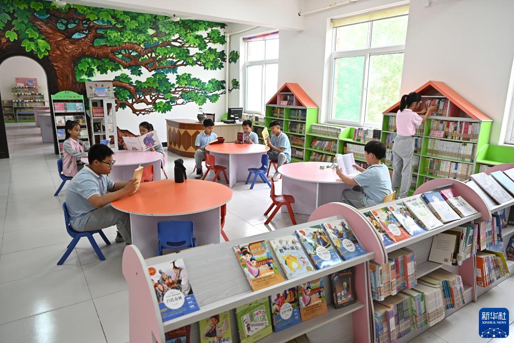 5月31日,中关村第三小学雄安校区的学生在阅览室内读书。