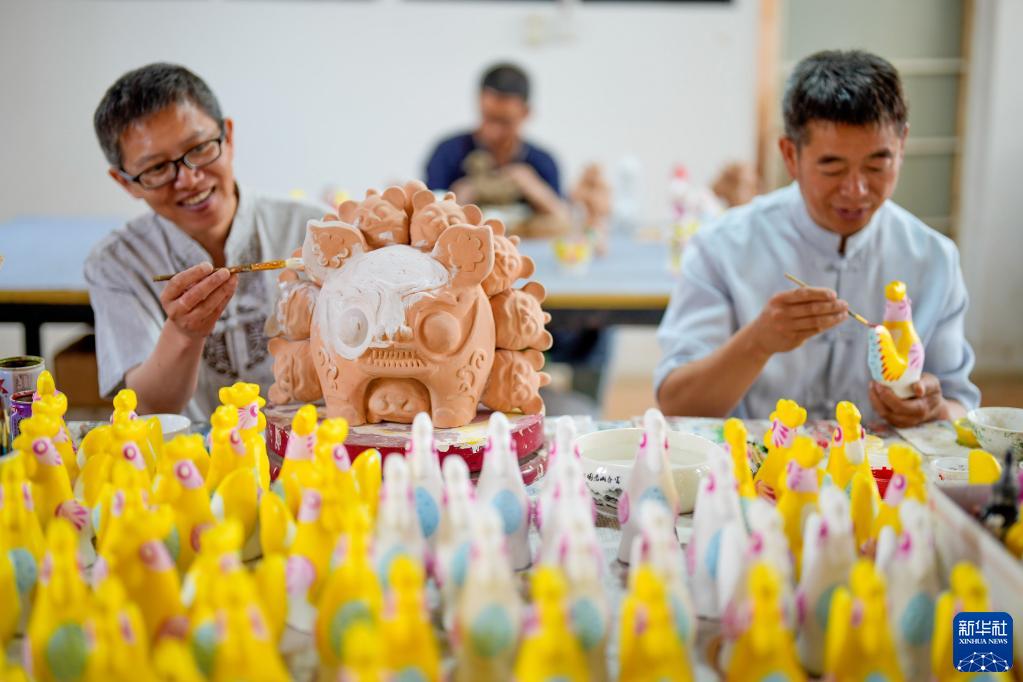 6月1日,泥塑艺人在河北省玉田县亮甲店镇的一家泥塑工作室内制作泥塑。