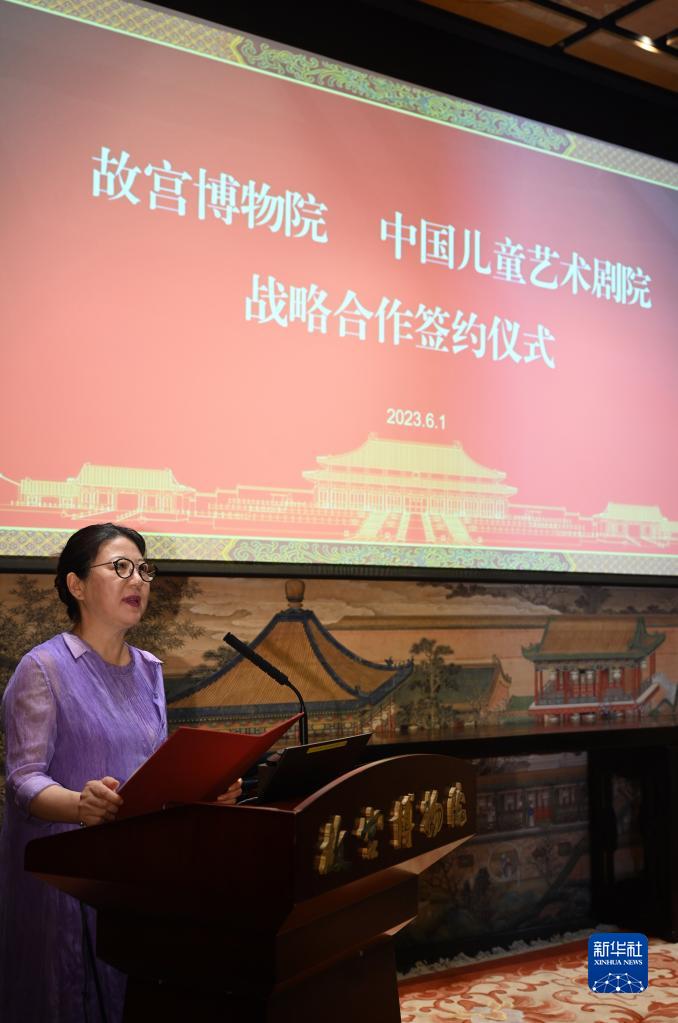 当日,故宫博物院与中国儿童艺术剧院在北京举行战略合作签约仪式。双方将在剧目创排、打造品牌、文创产品开发等方面加强合作,携手打造以故宫为题材的儿童戏剧精品,利用舞台艺术形式,让中华优秀传统文化走进中国孩子的心里,也让更多少年儿童走进故宫博物院,走进中国儿童剧场。
