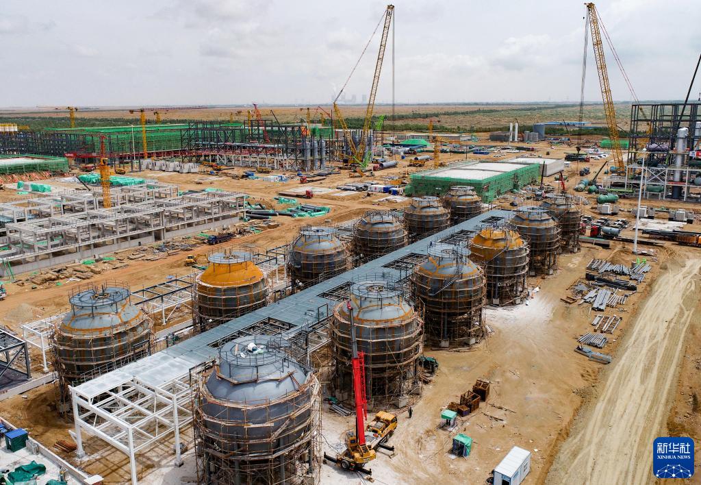 6月1日拍摄的鄂托克前旗光伏装备制造全产业链科技示范项目施工现场(无人机照片)。