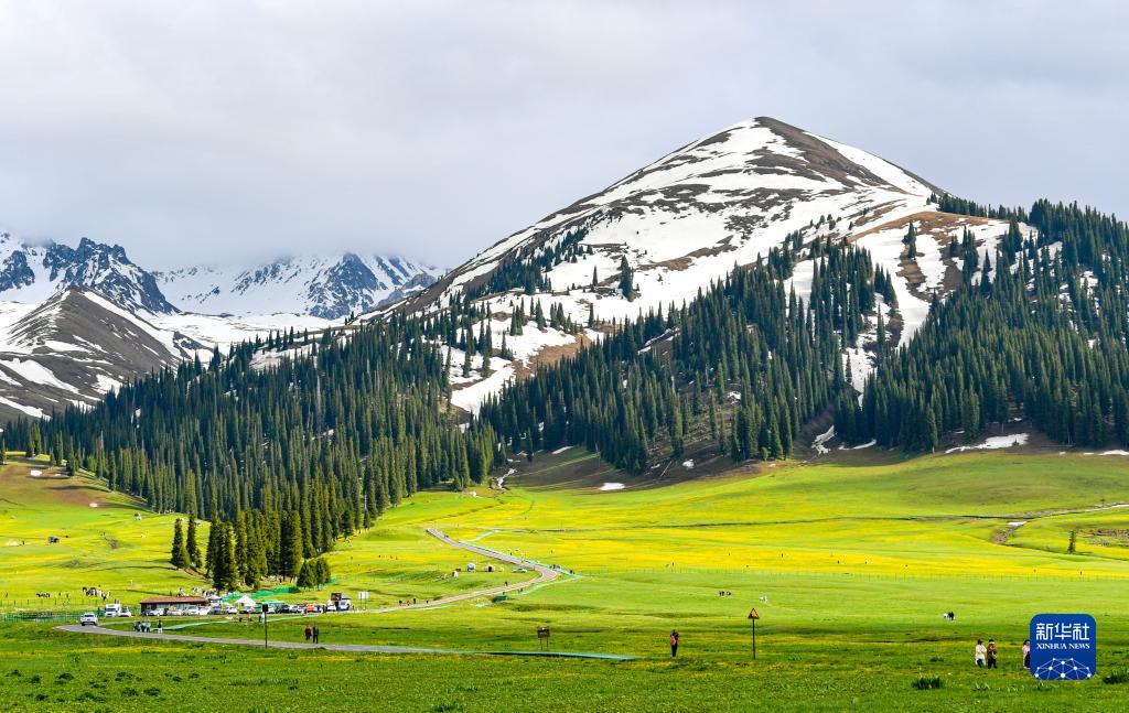 游客在位于新疆新源县的那拉提旅游风景区观光(5月19日摄)。