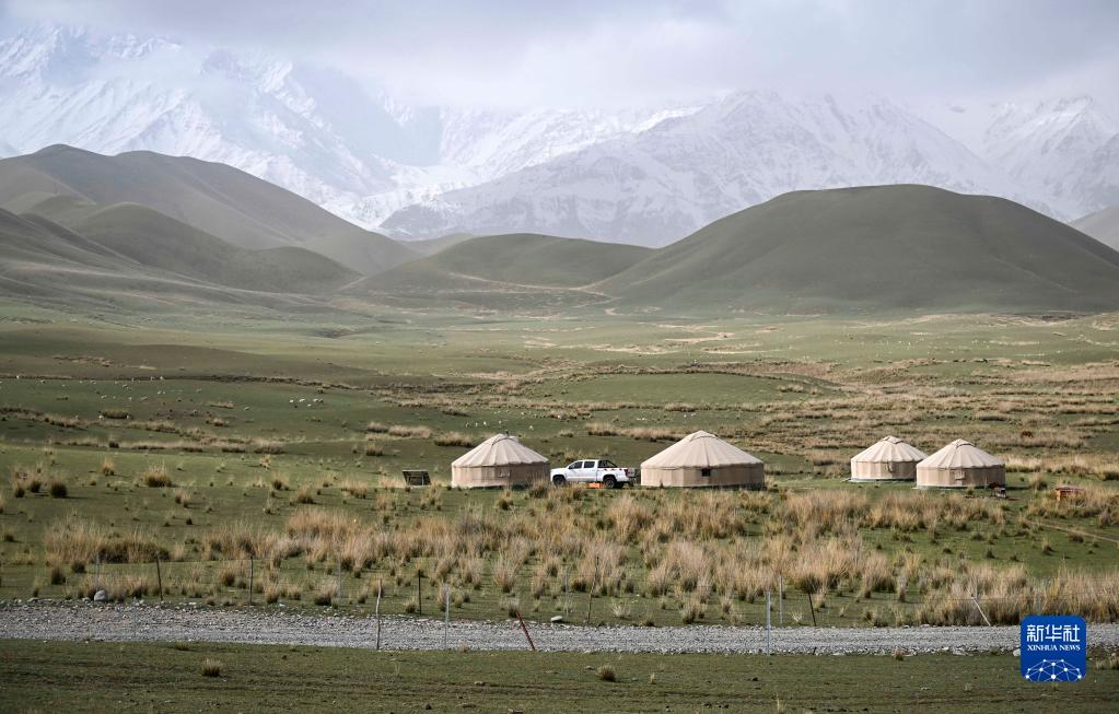5月31日在新疆和田地区策勒县昆仑山区拍摄的一处高山牧场景观。