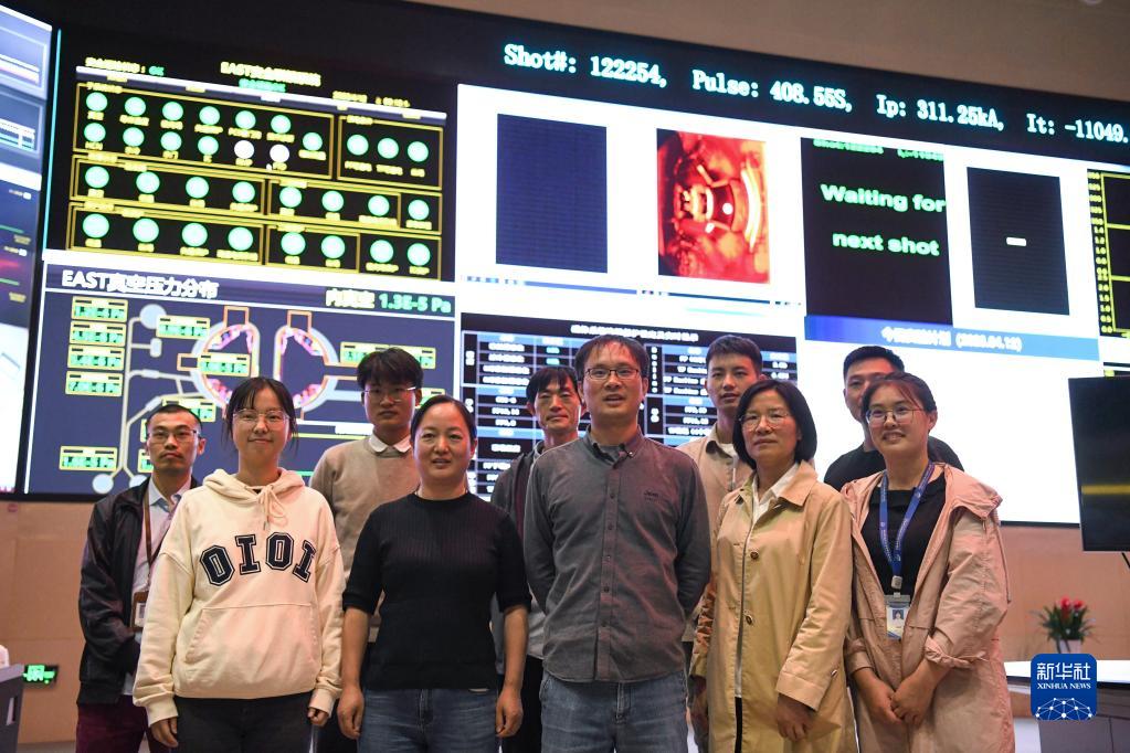 2023年4月12日,实验成功后,部分科研人员在全超导托卡马克核聚变实验装置(EAST)控制大厅留影。4月12日21时,中国有“人造太阳”之称的全超导托卡马克核聚变实验装置(EAST)创造新的世界纪录,成功实现稳态高约束模式等离子体运行403秒。