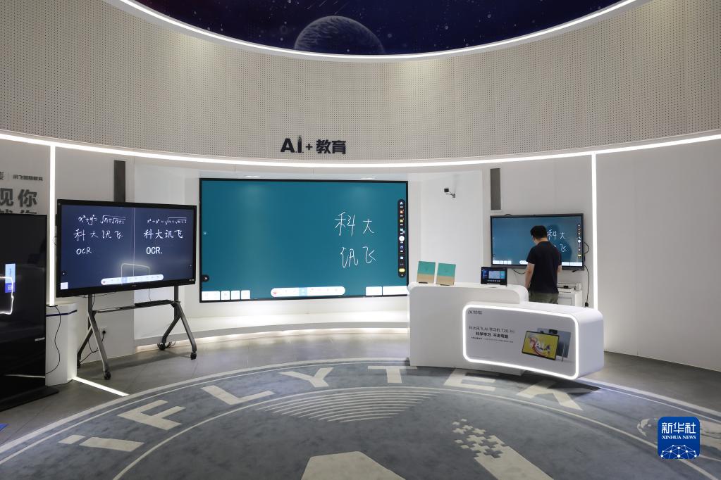 5月30日,在合肥科大讯飞人工智能体验馆,参观者体验应用于教育行业的人工智能产品。
