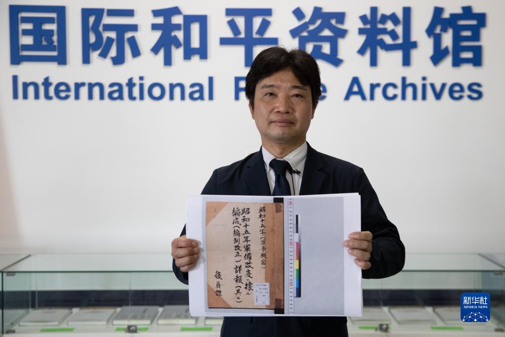 6月1日,在黑龙江外国语学院国际和平资料馆,日本学者松野诚也展示新发现的资料。