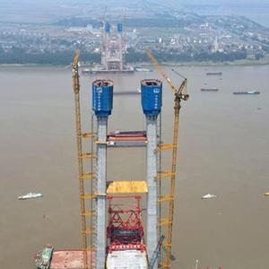 当日,由中铁大桥局承建的京台高速铜陵长江公铁大桥4号主塔顺利封顶,跨江主桥首节段钢梁开始架设。该桥是一座双层斜拉—悬索协作体系大桥,主跨988米,具有高速公路、城际铁路、货运铁路三种过江功能。